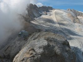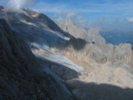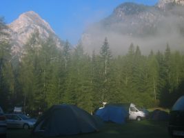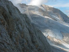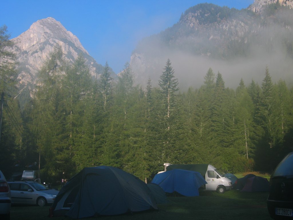 Im Sommerurlaub 2003 war ich allein unterwegs. Das war die Gelegenheit mal wieder einen Klettersteig in den Dolomiten zu gehen. Der Ferrata Eterna stand auf meiner Merkliste ganz oben. Ich suchte mir einen Campingplatz in der Nähe - Camping Malga Ciapela Marmolada (1456m). So konnte ich auf ein Fahrzeug verzichten und die Tour ab Zelt starten, was den sportlichen Wert noch steigerte. So kamen noch einmal 800 Hm zum eigentlichen Aufstieg von etwa 750 Hm dazu.