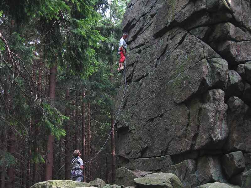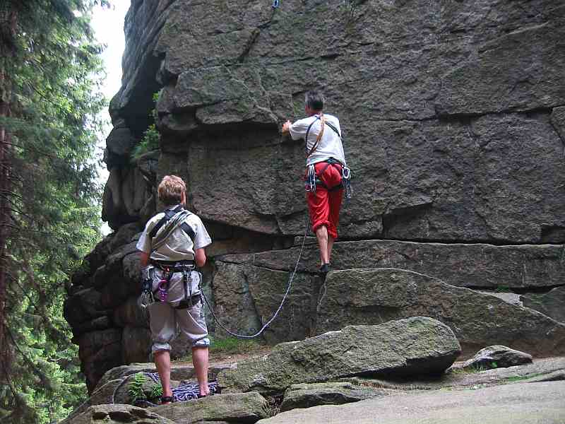 Mehrere Bohrhaken, sonst Klemmkeile.