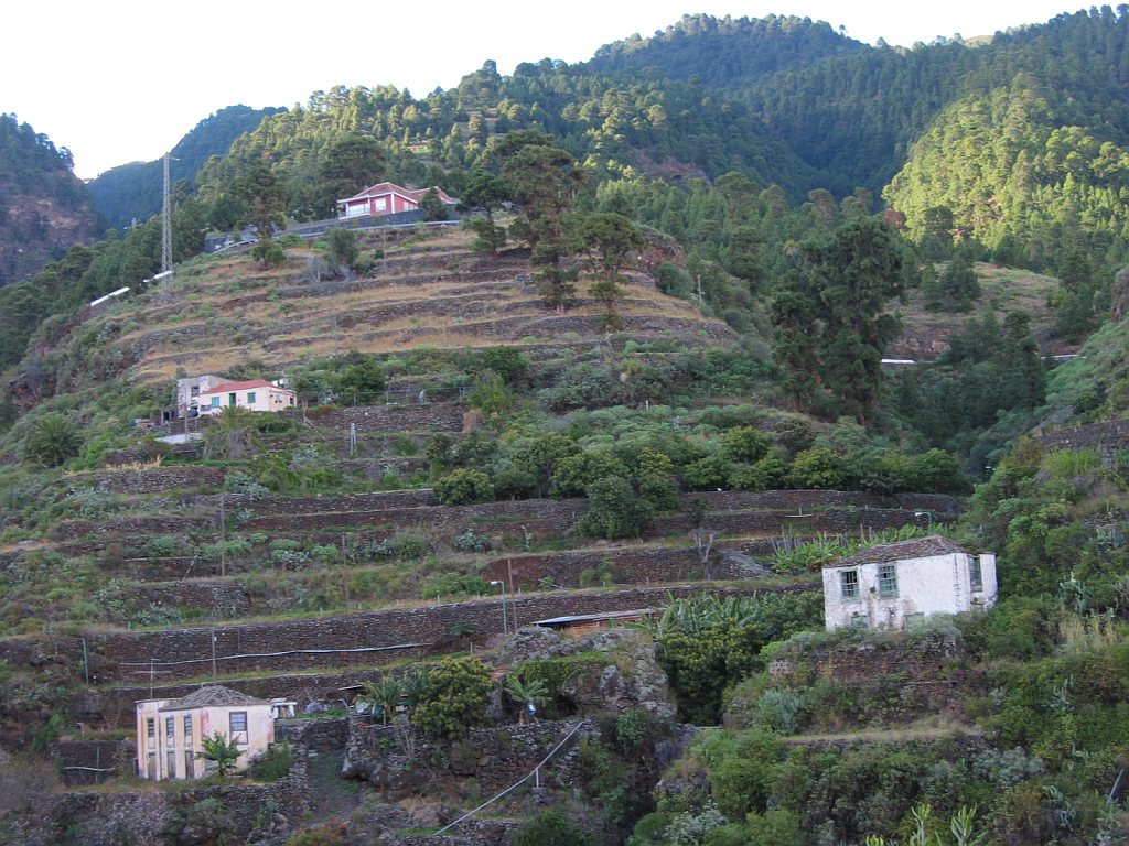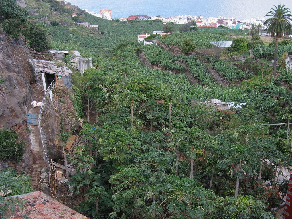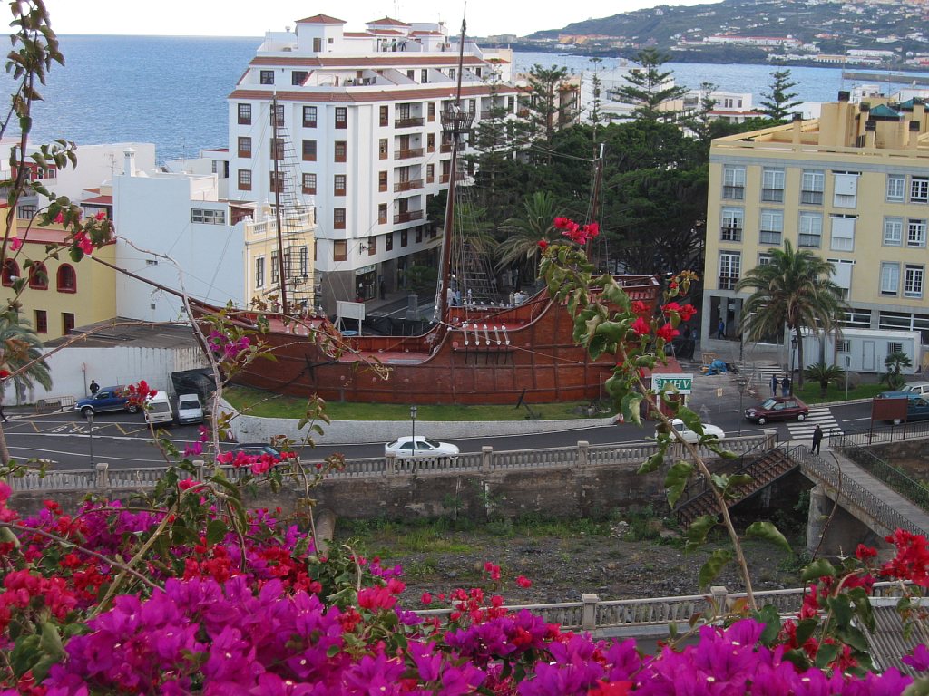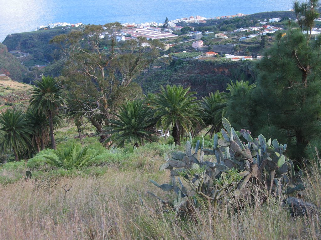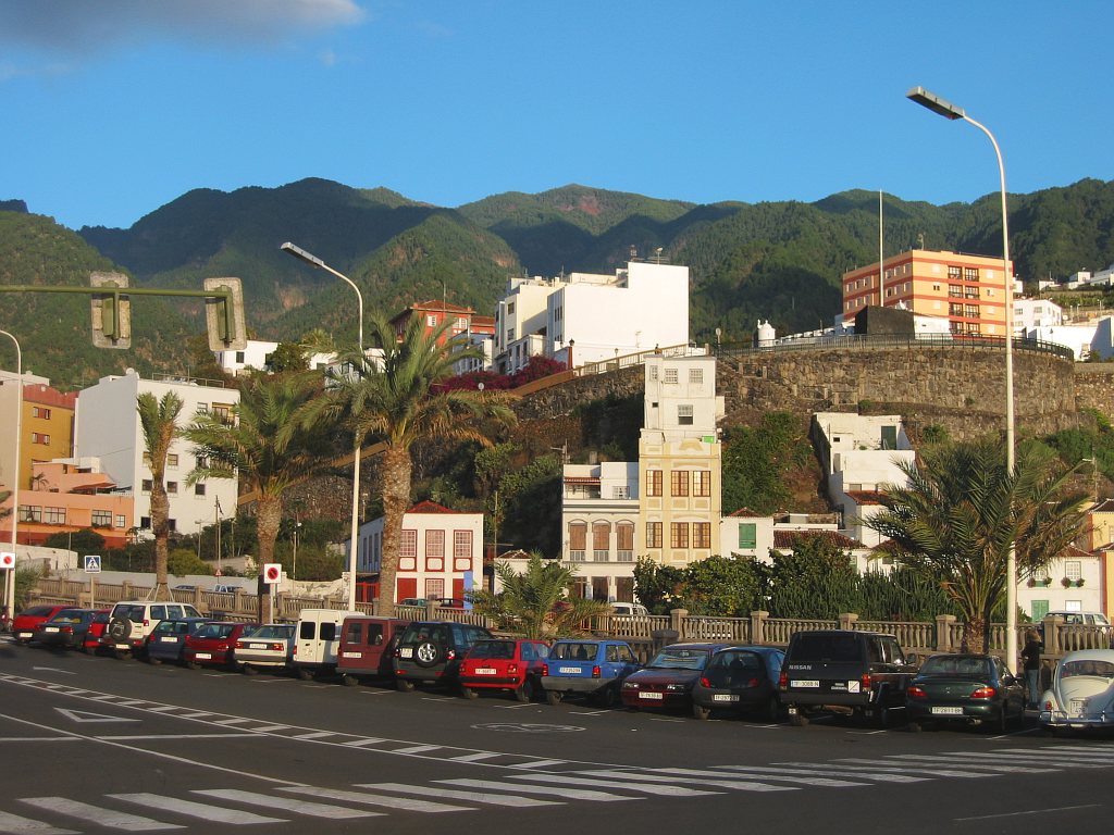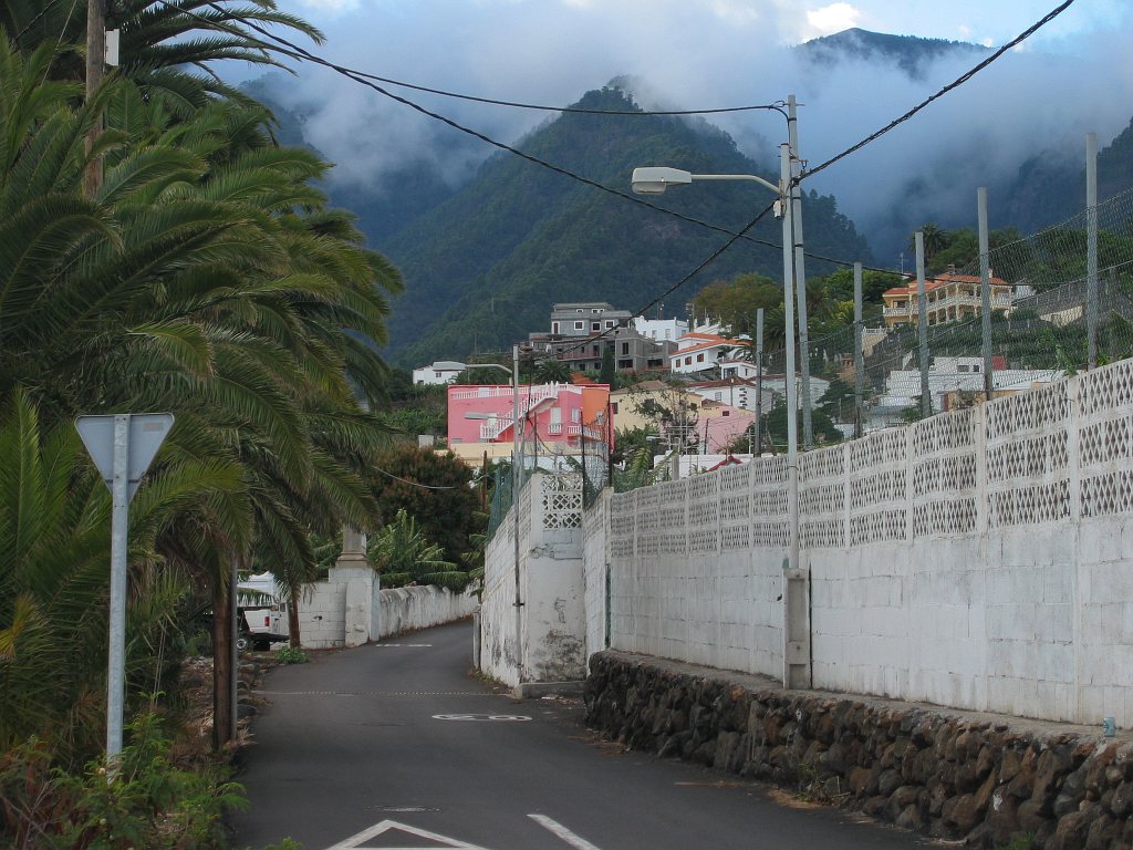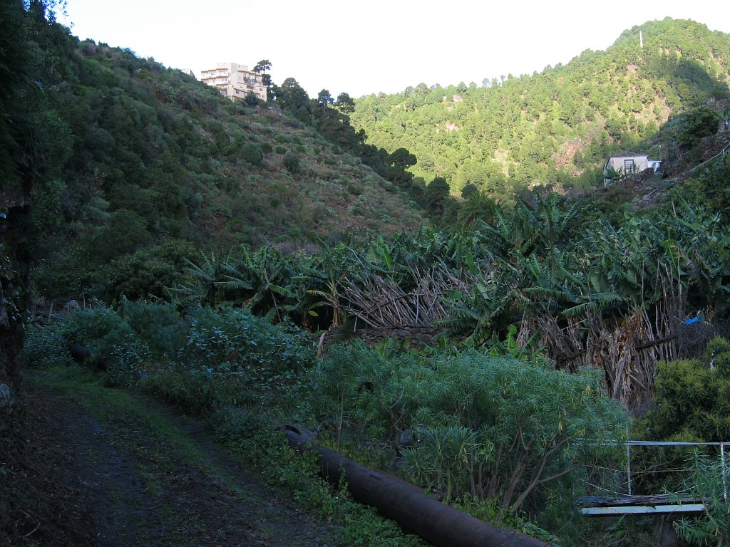 Start- und Endpunkt der Tour war mein Hotel Maritimo. Gegenüber dem Museumsschiff auf der anderen Seite der Avenida de las Nieves zweigt eine Bergstraße ab, die nach Las Nieves führt. Hier beginnt der Wanderweg PR LP3. Wegen einer Baustelle übersah ich beim Aufstieg den ausgeschilderten Weg. Am Ortsausgang von Santa Cruz verläuft der Weg auf der Straße nach Las Nieves. Nun befand ich mich auf dem richtigen Weg. An den Wegkreuzungen war der Weg gut ausgeschildert. Auf Höhe 250 m musste ich erstmal wieder 85m absteigen, um einen Ausläufer einer Barranco zu durchqueren - das Ganze dann noch einmal auf dem Rückweg. So waren noch 170 Hm zusätzlich zum eigentlichen Aufstieg von etwa 2230 Hm zu bewältigen.