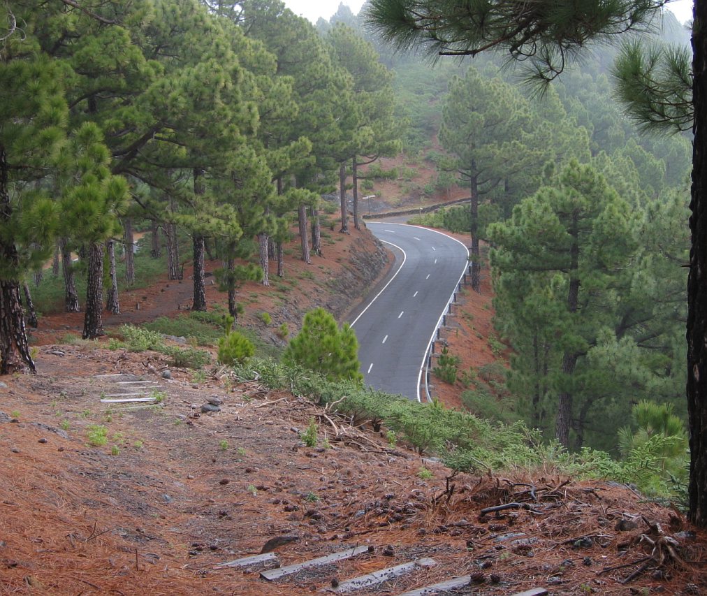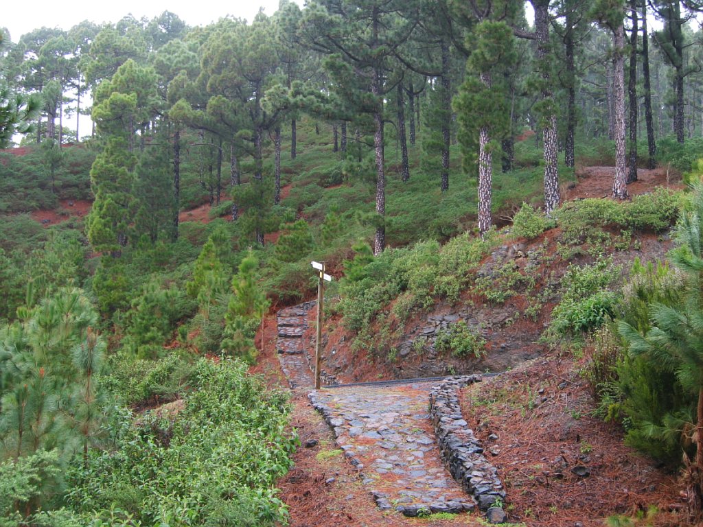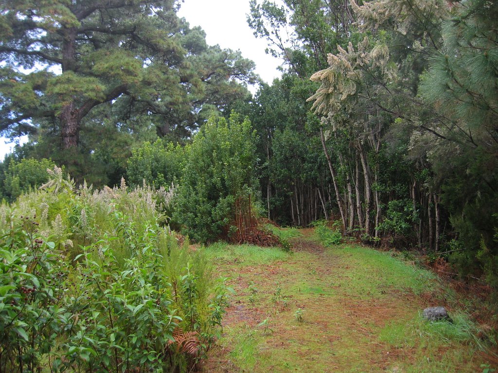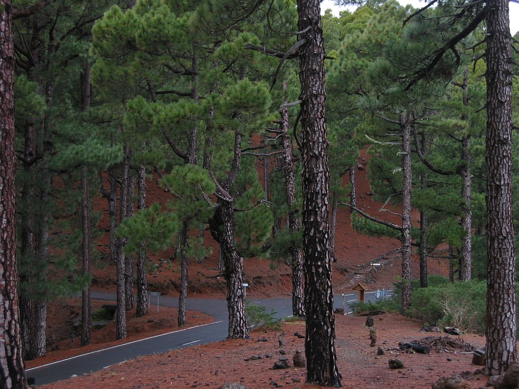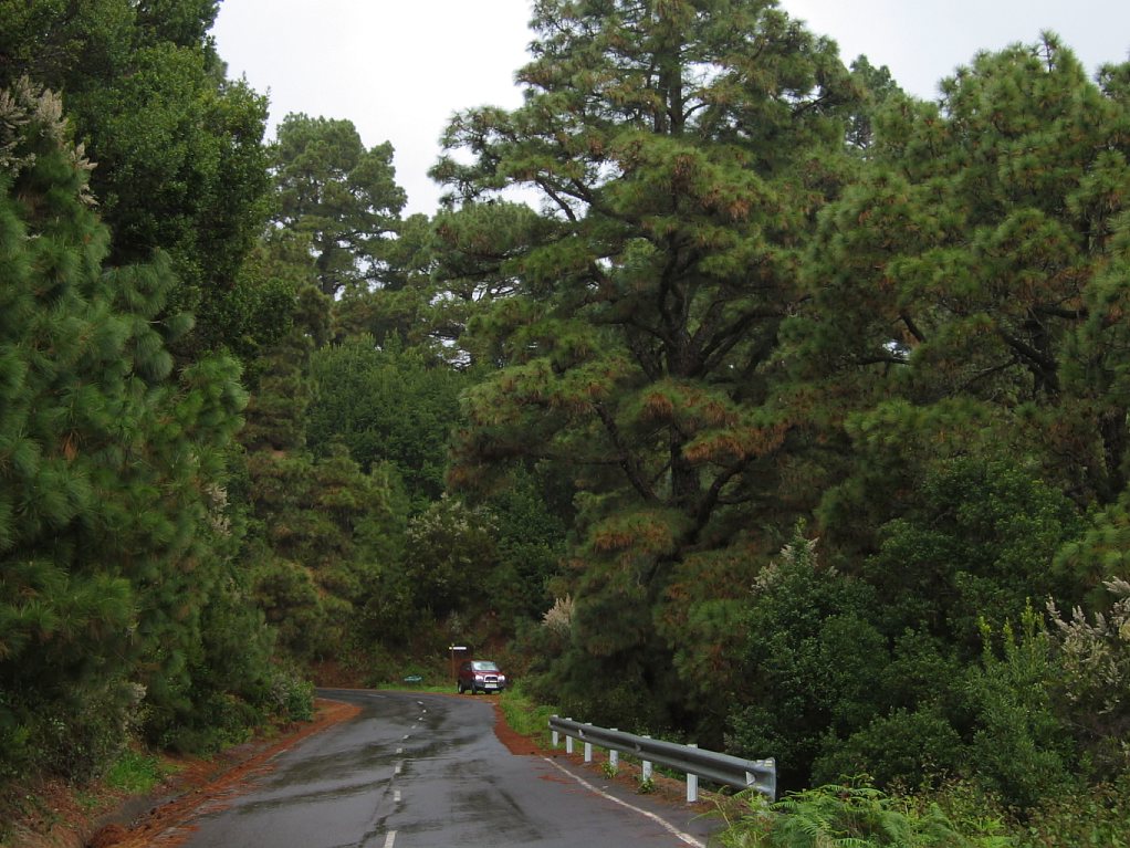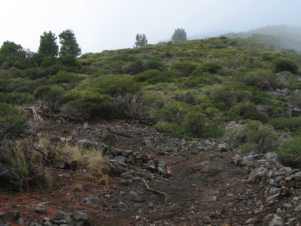 Nach der Barranco-Querung kreuzte der Wanderweg das erste Mal die Straße zum Rock de los Muchachos, ein zweites Mal auf etwa Höhe 1000 m, ein drittes Mal auf Höhe 1250 m, wobei sich der Wanderweg etwa 100 m weiter auf der rechten Seite der Straße fortsetzte. Auf Höhe 1550 m und Höhe 1700 m überquerte ich noch einmal die Straße bis ich auf Höhe 1870 m den Parkplatz erreichte. Hier beginnt der Wanderweg für die Autotouristen.