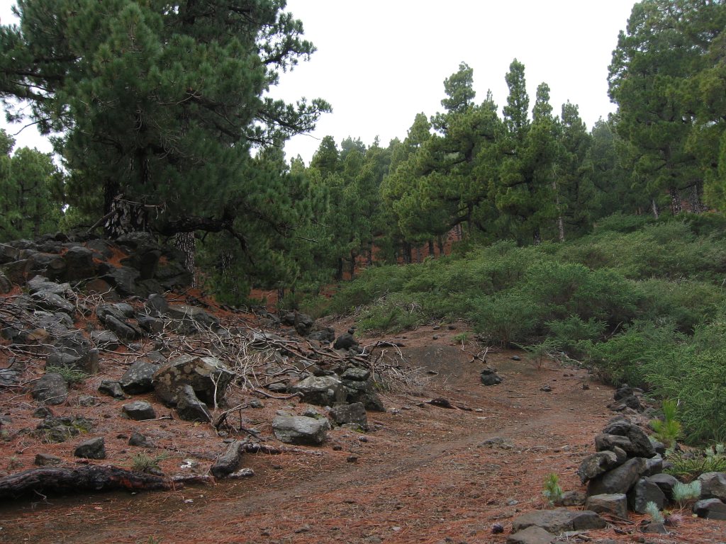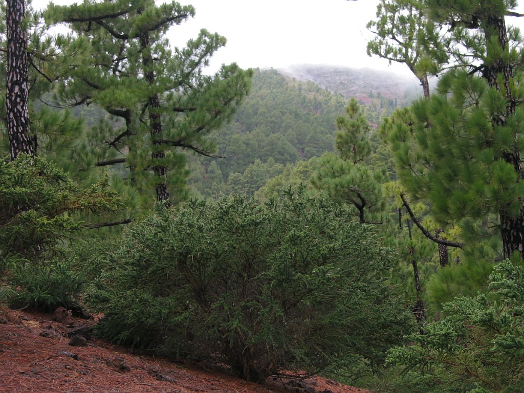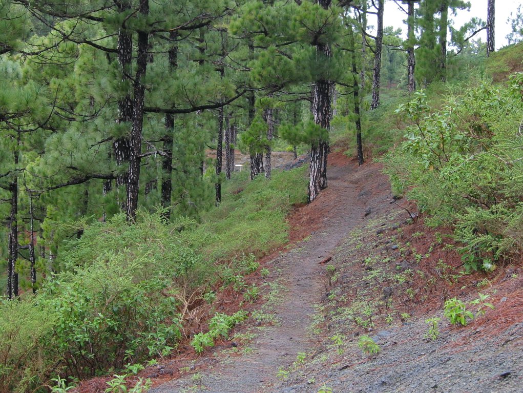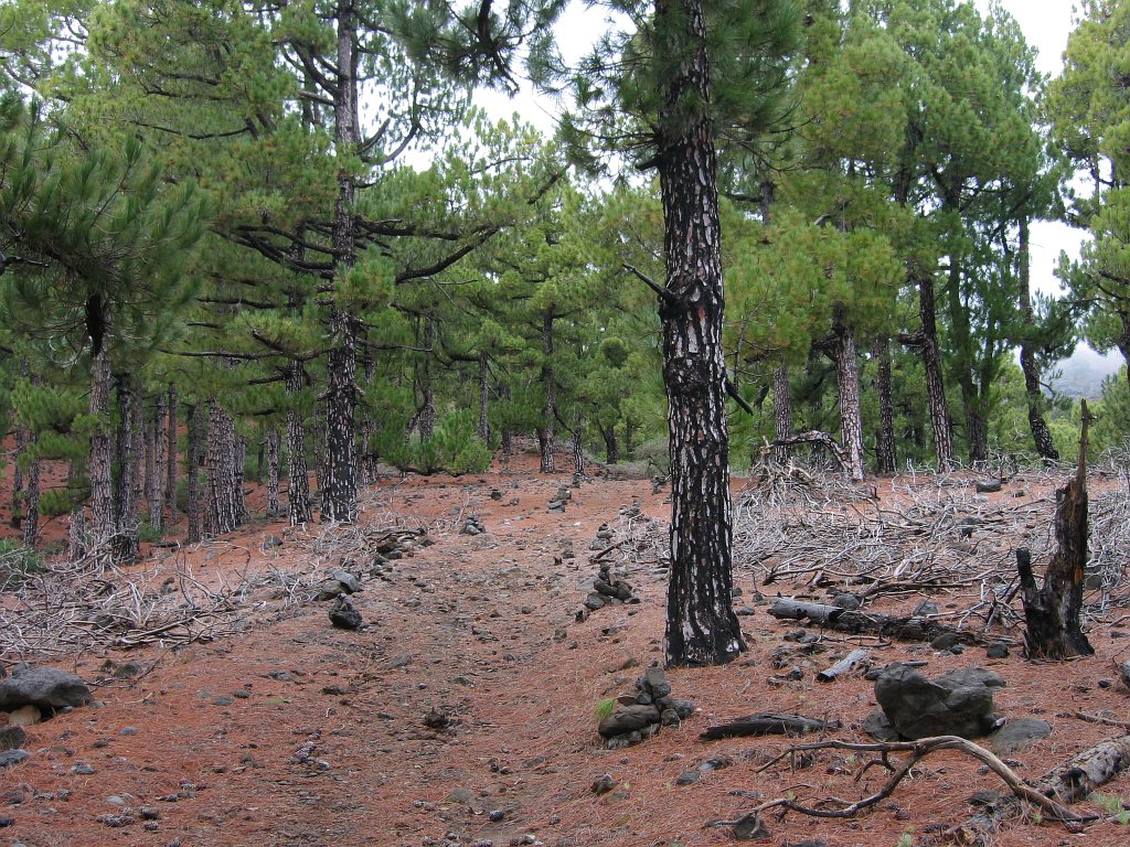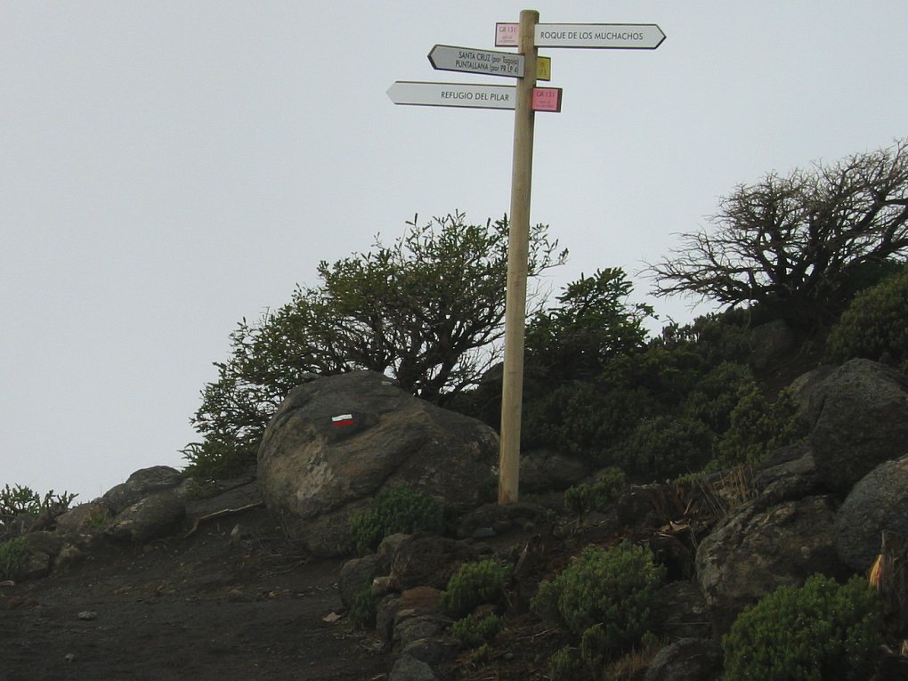 Eigentlich wollte ich wieder mal eine Inselüberquerung machen - von Santa Cruz über den Reventonpass zum Aussichtspunkt La Cumbricita, weiter Abstieg in den Caldera über Lomo Escuadero bis zum Zeltplatz, am nächsten Tag nach Puerto Tazacorte. Leider wurde mir bei der Anmeldung für den Zeltplatz mitgeteilt, dass mein Wanderweg gesperrt war, da durch einen Bergrutsch ein Teil des Weges verschüttet war. Außerdem war auch der Weg aus der Caldere hinaus problematisch - zu hoher Wasserpegel des Taburiente Bach und ebenfalls eine teilweise zerstörte Strasse vom Aussichtspunkt Los Brecitos. Als Alternative bot sich eine Wanderung auf den Calderakamm zum Pico de la Cruz an. Um ein Gefühl für die Länge einer solchen Tour zu bekommen, versuchte ich mich erstmal am Aufstieg zum Pico de la Nieve.
